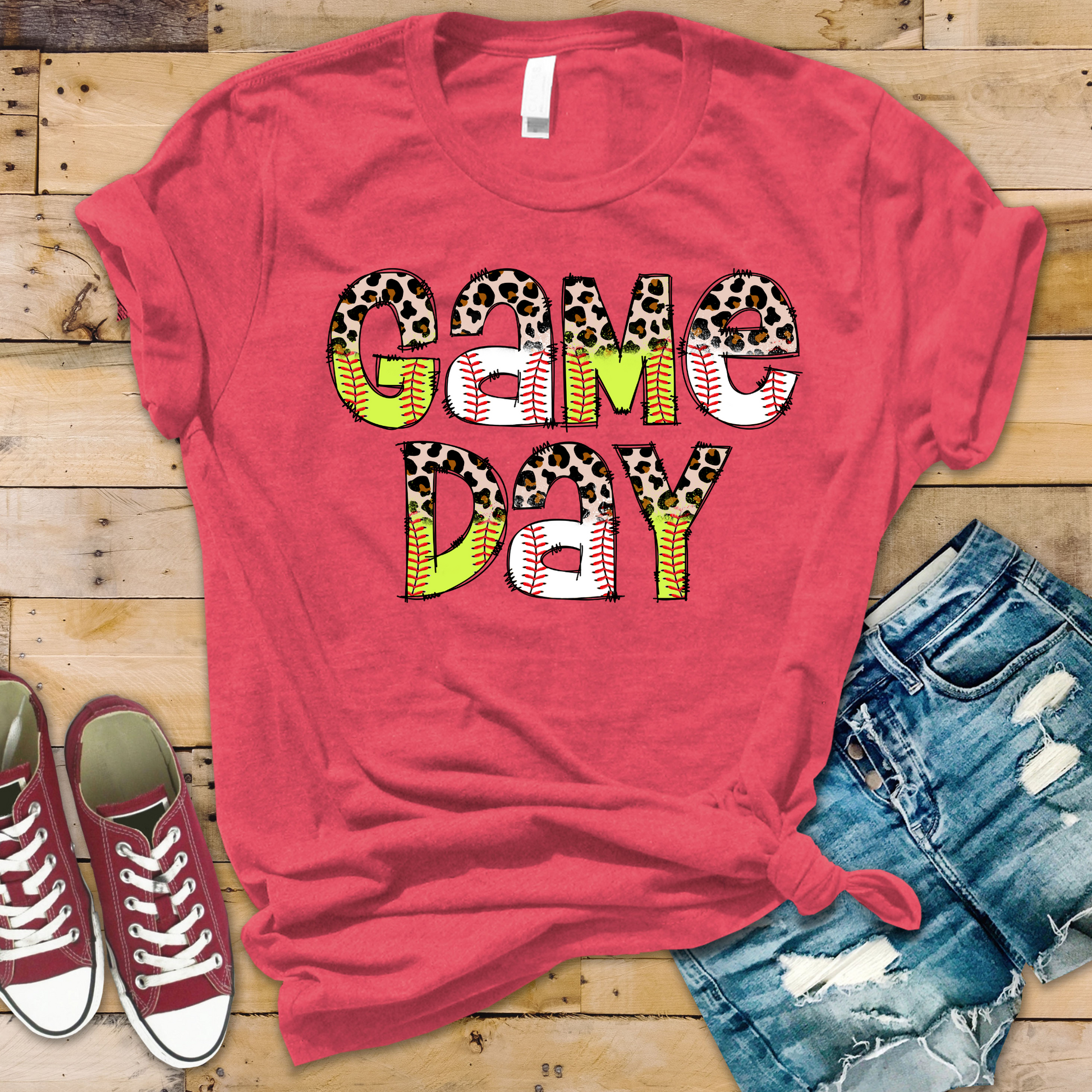 Get ready to cheer on your favorite teams with Game Day t-shirt! This perfect shirt allows you to show your support for both baseball and softball. Perfect for game day or any day, this versatile shirt will be your go-to for all your game-watching needs. (Score!)